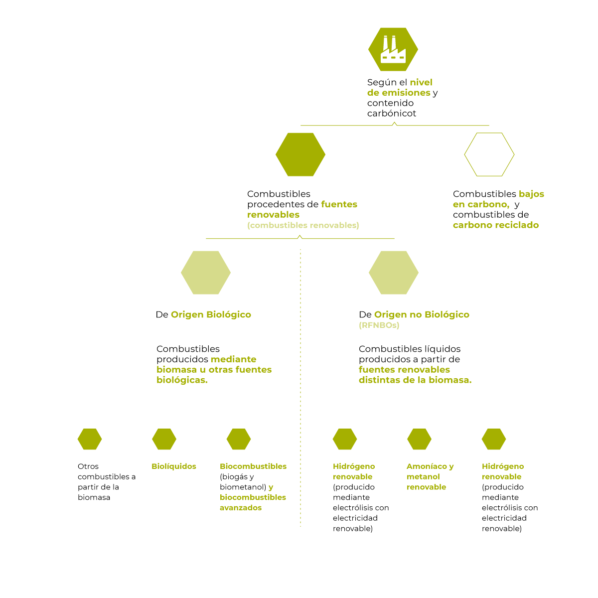 Se consideran combustibles renovables los compuestos químicos que se producen de manera sostenible y tienen la capacidad de sustituir a los combustibles fósiles, con unas emisiones bajas o nulas. La Directiva RED III define por primera vez los diferentes tipos de combustibles existentes, estaleciendo las siguientes distinciones básicas entre ellos: